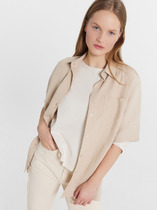 Модель полуприлегающего силуэта, с рельефами, без боковых швов, без подклада. Спереди центральная застёжка на петли и пуговиы. Воротник сорочечный. Пройма частично обработана отложной манжетой.