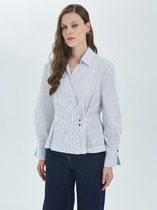 Блуза женская из текстильной ткани. Прямого силуэта. По спинке расположен подрез. В шов вставлено кружево. Рукав 3/4, спущенный с манжетой. По плечевому шву вставлено кружево. Вырез лодочка. Обработан притачной бейкой.