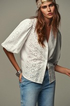 Объёмная блуза с мягкой линией плеча, рубашечным воротником на отрезной стойке, с кулисой по низу спинки. Застёжка на пуговицы, рукава на манжетах без застёжки.