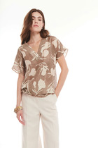 Втачной рукав длиной 7/8 со спущенным плечом присобран на манжету.