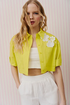 Горловина оформлена воротником-стойка.По переду планка с застежкой на петли и пуговицы.