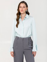 Блузка «оверсайз» с центральной застёжкой на петли-пуговицы по планке, воротником рубашечного типа. Спинка с притачной кокеткой. Линия плеча в блузке спущенная, рукав втачной с притачной манжетой по низу. Низ в блузке фигурной формы. В качестве декоративного отделочного элемента в блузке – отделочные строчки в тон ткани.