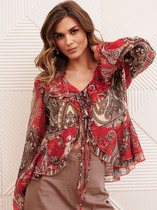 Базовая блузка из шифона, свободного кроя. Рукав длинный, втачной, с резинкой по низу. Особую оригинальность этой блузке придает бант на горловине. Эту нарядную блузку можно комбинировать и с юбкой, и с брюками.