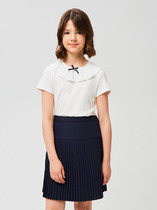 Блузка нарядная для девочек из высококачественного трикотажа(кулирка качество пенье). Блузка с воротником-стойка и застежкой сзади. Рукав короткий на манжете, кокетка на полочке выполнена из ажурного кружева. Блузка украшена брошкой. Трикотажная блузка не деформируется после стирки, очень удобна и комфортна для вашего ребенка. Отличное решение для торжественного случая.
