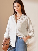 27.03 Vilatte Блузка в полоску свободного силуэта с карманом из эластичного хло