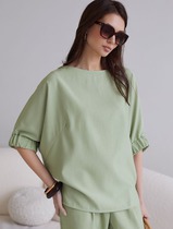 Блузка с цельнокроеным рукавом 3/4 из вискозы с добавлением хлопка
