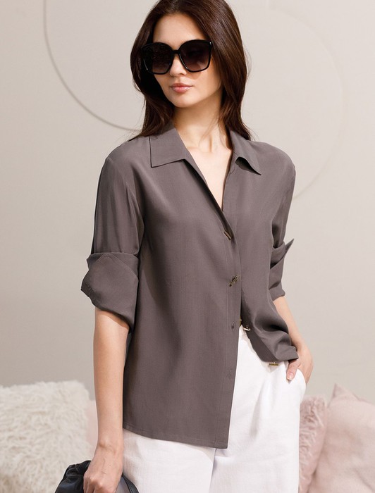 Состав: 55%Вис 45%Лиоцелл (Вис) Плотность: 115 Г/м2Блузка кофейного цвета сочетает в себе комфорт и элегантность благодаря материалу из вискозы с лиоцеллом. Аккуратный отложной воротник подчеркивает утонченность образа, а продолговатые металлические пуговицы золотистого цвета добавляют выразительный акцент и придают блузке благородный вид. Широкие манжеты на рукавах привлекают внимание и делают силуэт современным. Спущенная линия плеча формирует расслабленный, но стильный внешний вид, что идеально для тех, кто ценит индивидуальность и уверенность в деталях. Крой продуман так, чтобы подчеркивать достоинства фигуры и на больших размерах, создавая гармоничный силуэт без лишних усилий. Ткань из вискозы с добавлением лиоцелла обеспечивает приятные ощущения и отличную посадку, струится на теле и охлаждает в жаркую погоду. Рубашка легко впишется как в деловой гардероб, так и в повседневный стиль, позволяя выглядеть безупречно независимо от ситуации.
