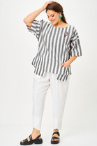 Состав: 55%Вис 45%Лиоцелл (Вис) Плотность: 115 Г/м2Блузка пудрового цвета сочетает в себе комфорт и элегантность благодаря материалу из вискозы с лиоцеллом. Аккуратный отложной воротник подчеркивает утонченность образа, а продолговатые металлические пуговицы золотистого цвета добавляют выразительный акцент и придают блузке благородный вид. Широкие манжеты на рукавах привлекают внимание и делают силуэт современным. Спущенная линия плеча формирует расслабленный, но стильный внешний вид, что идеально для тех, кто ценит индивидуальность и уверенность в деталях. Крой продуман так, чтобы подчеркивать достоинства фигуры и на больших размерах, создавая гармоничный силуэт без лишних усилий. Ткань из вискозы с добавлением лиоцелла обеспечивает приятные ощущения и отличную посадку, струится на теле и охлаждает в жаркую погоду. При пошиве использована технология «чистый край» по всей длине центральной планки и низу изделия. Это признак премиум качества — «чистый край» вместо оверлока. Блузку можно носить с топом, не застегивая — при этом распахнутая блузка будет выглядеть максимально эстетично.Рубашка легко впишется как в деловой гардероб, так и в повседневный стиль, позволяя выглядеть безупречно независимо от ситуации.