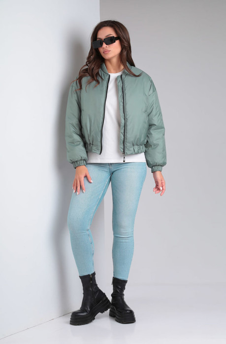 Куртка  “бомбер”  утепленная  (микрофайбер  150гр/м2) на подкладке свободного кроя  со спущенной линией плеча и  воротником стойкой. Застежка центральная на молнию. Спинка с кокеткой. Рукав  втачной, двух шовный со сборкой в локтевой области, низ рукава с притачной манжетой на резинке. По переду прорезные карманы с листочкой. Низ куртки с притачной манжетой со сборкой на эластичную ленту.  Рассчитано на температурный  режим  до  -5  (указанная температура комфорта может зависеть от индивидуальной восприимчивости к холоду). На модели “бомбер” 46 размера (параметры модели ОГ-90см ОТ-71см ОБ-102см рост -173см)