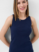 Моделирующий топ на широких бретелях со съемными чашками, выполнен из мягкой эластичной микрофибры. Мягкие поролоновые вкладыши оказывают легкий пуш-ап эффект, при необходимости, вкладыши можно убрать.