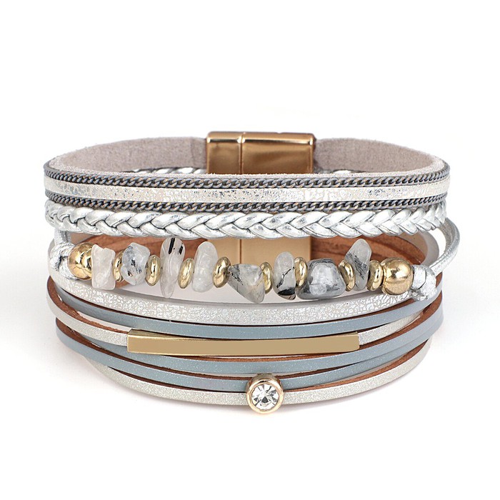 Браслет, арт.656938 , р. 18, 0 гр., агат , вулканическая лава , кожа , рутиловый кварц черный