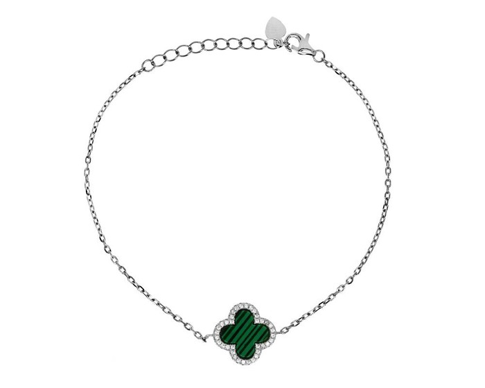 Браслет, арт.650326 Серебро Серебро 925, р. 17.5-20.5, 2,77 гр., малахит прес.
