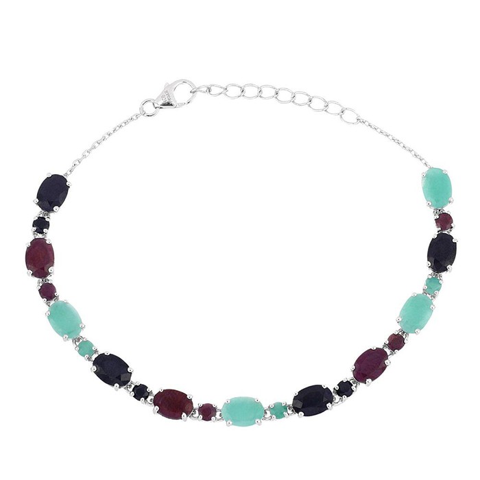 Браслет, изумруд берилл , рубин корунд , сапфир корунд, Счастье