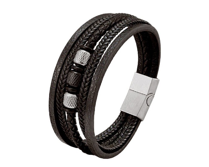 Браслет, арт.650824 , р. 21, 0 гр., кожа , сталь