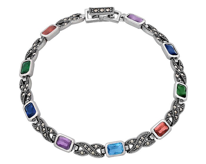 — Браслет, марказит , синт.аметист , синт.изумруд , синт.рубин, SL-AGA208