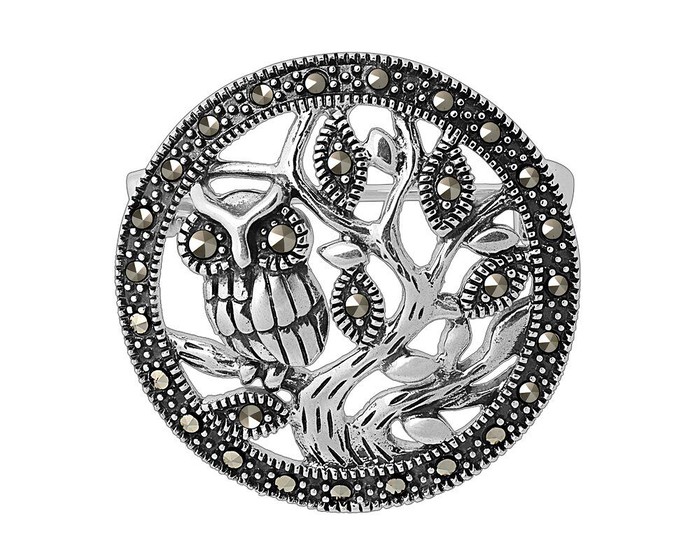 Вес: 5.81 г Вставка: Марказит Цвет камня: Серый Производство: Таиланд Покрытие: Оксидирование Количество: 1Брошь, арт.656349 Серебро Серебро 925, 5,81 гр., марказит