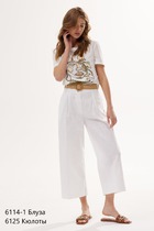Трендовые брюки на резинке, с карманами по бокам, из очень приятной эко-кожи с хлопковой основой. Стильным отделочным элементом являются сьемные цепи на карабинчиках.