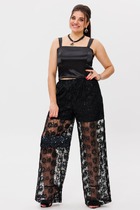 Трендовые брюки на резинке, с карманами по бокам, из очень приятной эко-кожи с хлопковой основой. Стильным отделочным элементом являются сьемные цепи на карабинчиках.