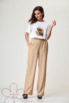 Брюки классического покроя, средняя посадка с боковыми функциональными карманами. Притачной пояс с эластичной тесьмой внутри без застежки.