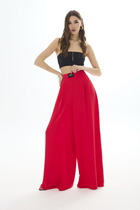 Брюки ддиной по щиколотку, на передних частях брюк обработаны боковые карманы с наклонным входом, на брюках заутюжены стрелки,  переходящие в складку по линии талии на передних частях.