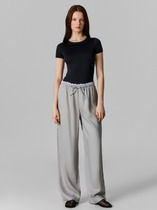 Брюки свободного кроя, зауженные к низу, выполнены из хлопкового полотна коричневого цвета. Характеристика: свободный крой, брючины широкие, заужаются к низу, пояс на резинке, имитация гульфика, в боковых швах карманы с отрезным бочком. Передние и задние детали разделены на две части. Боковые части с вытачками. По переду и спинке отстрочены канты. По задним половинам накладные фигурные карманы. Длина по боковому шву 95 см
