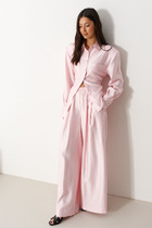 Брюки женские из гладкокрашенного трикотажного полотна «лининг» прямого кроя, длинные, свободные, расширенные к низу, на поясе с эластичной тесьмой внутри, карманами в боковых швах. Передние половины застрочены двумя параллельными линиями, смещенными к боковым швам.