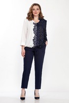 Брюки классические, прямые, слегка заужены к низу, по переду обработаны карманы с отрезным бочком, застежка на тесьму-молнию и 1 пуговицу. На задних половинках обработаны вытачки и имитация карманов в рамку с двумя обтачками, пояс в брюках притачной. По низу брюк в боковом шве есть небольшой разрез. Длина брюк от талии по боковому шву 97 см.