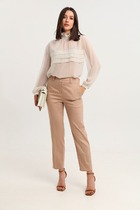 Брюки из костюмной ткани прилегающие по бедрам, зауженные.