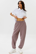 Vilatte Брюки-трубы из эластичного хлопка с эффектом кожи D24.277 кофейный
