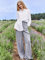 Брюки – женские из гладкокрашенного трикотажного фактурного полотна в «рубчик» с добавлением ангоры, полуприлегающего силуэта, длинные, слегка расширенные книзу, на притачном поясе с эластичной тесьмой внутри.