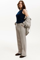 Брюки без пояса, расширенные к низу, по внутреннему срезу верхнего края расположена резинка. По переднему и заднему полотнищу брюк- талиевые вытачки. По талиевым вытачкам переда- декоративные пуговицы.