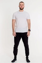 Мужские брюки из футера с лайкрой. Пояс и вставки контрастного цветам, принт в виде надписи, пояс на резинке со шнурком, по бокам карманы. Несколько вариантов расцветки. Размеры от 46 до 56. Внимание, данный товар не подбирается по цветам и не продается в розницу!