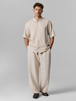 Брюки мужские из гладкокрашенго трикотажного полотна "футер 2 -нитка", свободного покроя, на притачном поясе с эластичной тесьмой внутри, с карманами в боковых швах. Нижние срезы обработаны подгибкой.