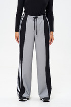 Брюки женские из тканого полотна «искусственный шёлк полиэстер» с набивным рисунком, длинные, свободные, с карманами в боковых швах, на притачном поясе с эластичной тесьмой внутри.