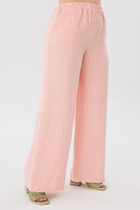 Брюки прямого кроя. На передних половинках брюк карманы с наклонным входом и отрезной боковой частью. Пояс притачной, подкройной. Линия талии приспущена.
