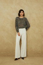 Элегантные брюки прямого кроя с боковыми карманами с отрезным бочком. Застежка на молнию и пуговицу. По переду - складки. Задние половинки с талиевыми вытачками и прорезными карманами с листочкой. Верхний срез обработан притачным поясом, по спинке собран на резинку. Низ обработан швом в подгибку.