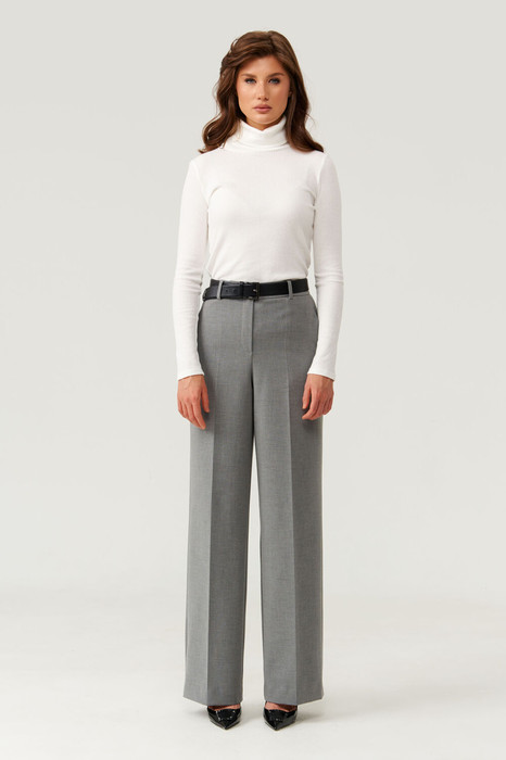 Эти женские брюки выполнены из костюмной поливискозной ткани серого цвета, идеально подходящей для повседневных образов. Их классический крой и нейтральный оттенок делают их универсальным элементом гардероба.