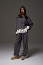 Длина брюк по боковому шву с поясом около 113 в размерах 40-46 и около 114,5 см в размерах 48-52