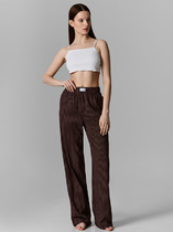 Модель прямого силуэта. Пояс притачной, с резиной и шлёвками. Застёжка на молнию и крючки с пуговицей на поясе. В боковых швах карманы и лампасы из декоративной тесьмы. Сзади прорезные карманы с листочкой. В шлёвки вставлен пояс-шнурок с наконечниками.