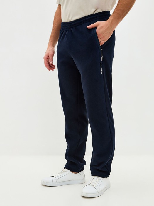 Брюки мужские из флисовой ткани. На брюках в области колена и по низу брючин вставки из водоотталкиваюшей плащевой ткани. Карманы с открытыми молниями. Низ брюк присобран на эластичную резинку. Пояс по талии дополнительно регулируется шнурком. На левой половине, вдоль бокового шва настрочен шеврон с фирменным логотипом.