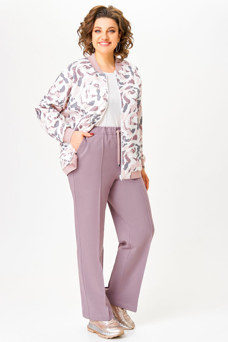 Брюки женские спортивного стиля из эластичного хлопкового полотна, прямого от бедра кроя. По передним половинкам брюк расположены фигурные карманы. По передним и задним половинкам отсрочены канты. Пояс брюк притачной с эластичной тесьмой-резинкой, в передней части пояса вставлен декоративный шнурок с металлическими наконечниками.