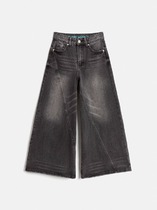 Джинсы для девочки с эффектом потертости. Пояс на резинке со шнурком. Посадка flare fit - облегают талию и бёдра, а от колена расширяются книзу. Высокая посадка.