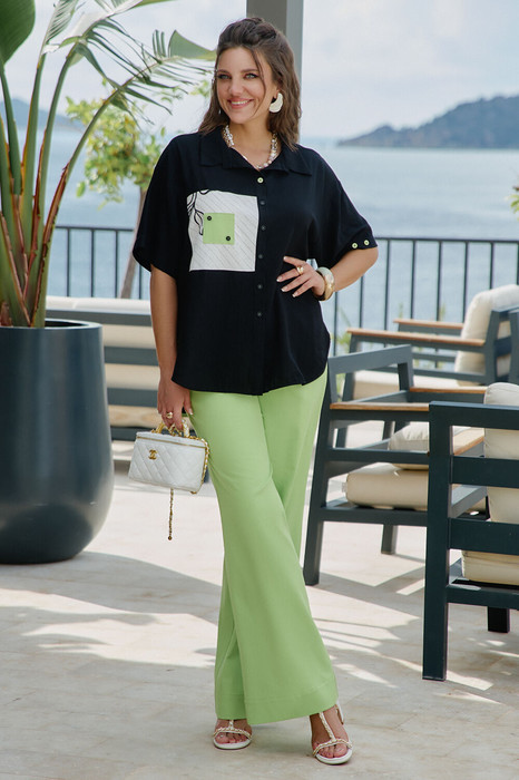 Салатовые брюки — это не просто модный тренд, а инвестиция в летнее настроение. Их прямой крой делает их универсальными, а яркий цвет — запоминающимися. Ключ к успешной стилизации — баланс: позвольте брюкам быть главным акцентом, а всё остальное пусть будет их достойной поддержкой. Помните, лето — время для экспериментов, и эти брюки станут идеальным полем для цветовых игр и стилистических открытий. Брюки прямого силуэта с притачным поясом на эластичной тесьме-резинке, которая обеспечивает максимально удобную посадку на любой тип фигуры. По переду брюк прорезные карманы. Длина брюк 108 см.
