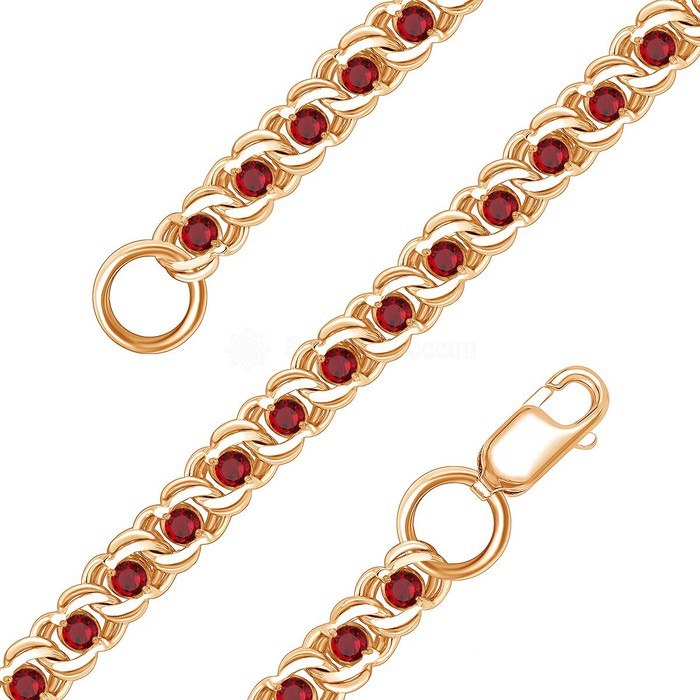 Цепь из золочёного серебра с красными фианитами - Бисмарк