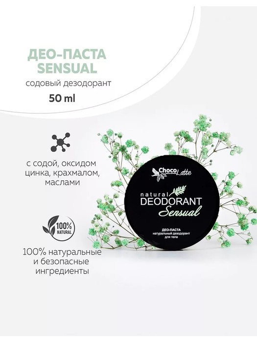 Натуральный содовый дезодорант для тела SENSUAL эффективно защищает от пота и неприятного запаха, дарит ощущение свежести и комфорта на весь день.