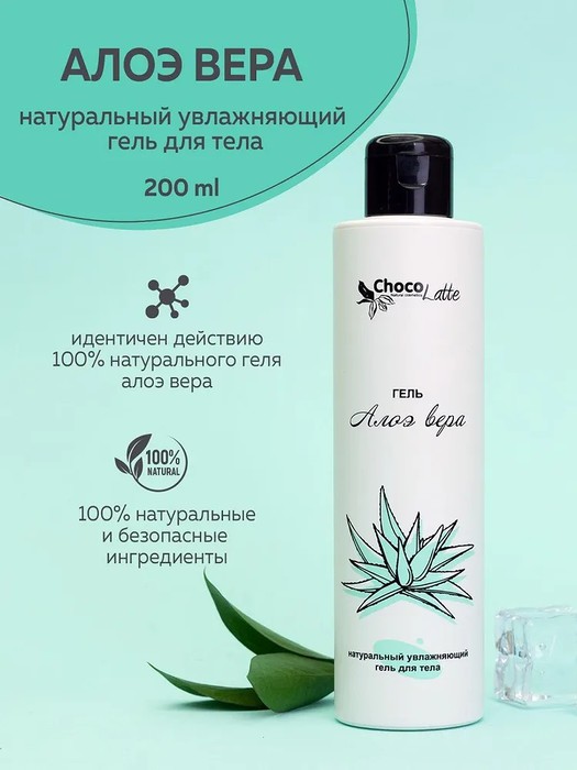 Гель Алоэ Вера ТМ Шоколатте - натуральное эффективное увлажняющее средство для кожи, лёгкой консистенции, без содержания масел, моментально впитывается, не оставляя жирного блеска.