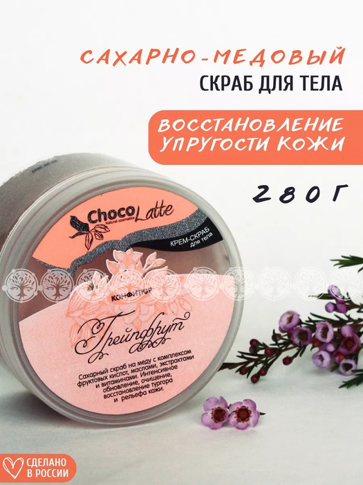 КОНФИТЮР для тела ГРЕЙПФРУТ - сахарный скраб на меду с комплексом фруктовых кислот, маслами, экстрактами и витаминами для интенсивного обновления, очищения, восстановления тургора и рельефа кожи.