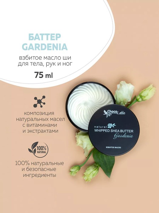 Натуральный баттер GARDENIA питает, увлажняет и смягчает кожу. Устраняет сухость и шелушение, способствует заживлению микроповреждений. Повышает тургор и эластичность кожи.