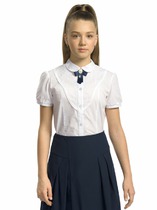 Базовая блузка с ажурным воротничком станет отличным дополнением к вашему гардеробу! Модель скоротким рукавом выполнена из хлопкового полотна с добавлением эластана. Блузка отлично подойдет для создания классных школьных образов!