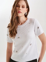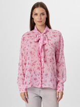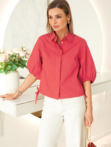 Блузка из вискозного трикотажного полотна пике, свободного кроя. Втачной короткий рукав. Отложной воротник со стойкой, спереди цельнокроеная планка на пуговицах. Боковые разрезы.
